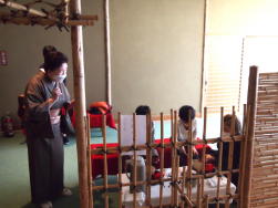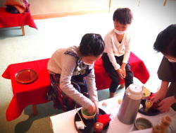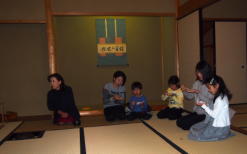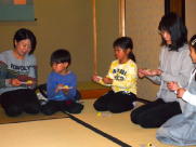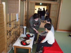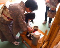 会員が手ほどき、実際に茶筅を持ちお点前を・・・